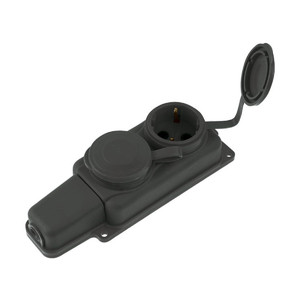 Розетка 2-ая переносная с/з, 16А, брызг. защ. каучук, черная, Юпитер (РП16-232)