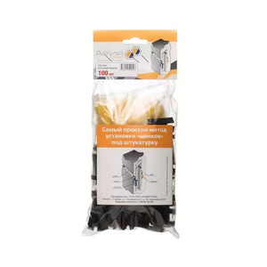 Набор состоит из 100 креплений, которых хватит для фиксации 20 штукатурных маяков.