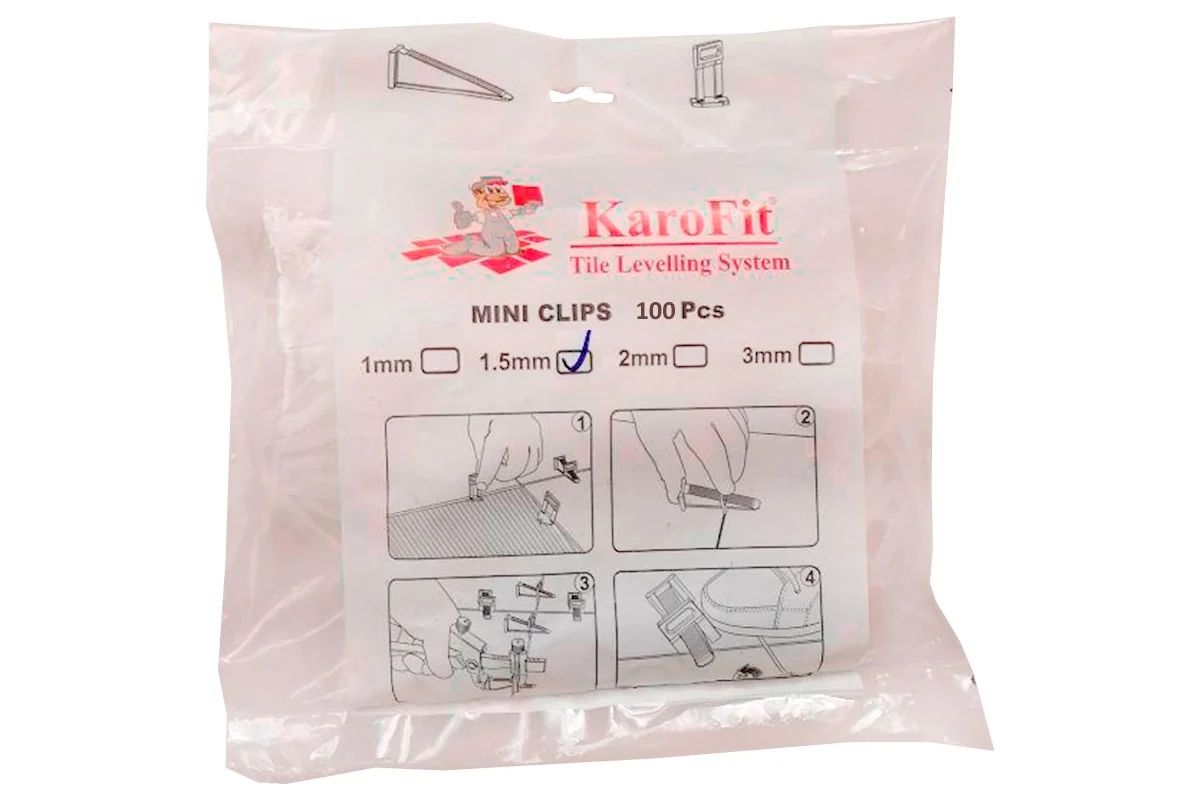 Клипс MINI KAROFIT - одноразовый элемент системы выравнивания плитки "KAROFIT" с шириной шва 1.5 мм. Имеет технический шов у основания, что позволяет при выбивании отрываться ровно у основания. Закрепляет клин для качественного выравнивания плитки. Для плитки толщиной - 3-12 мм.