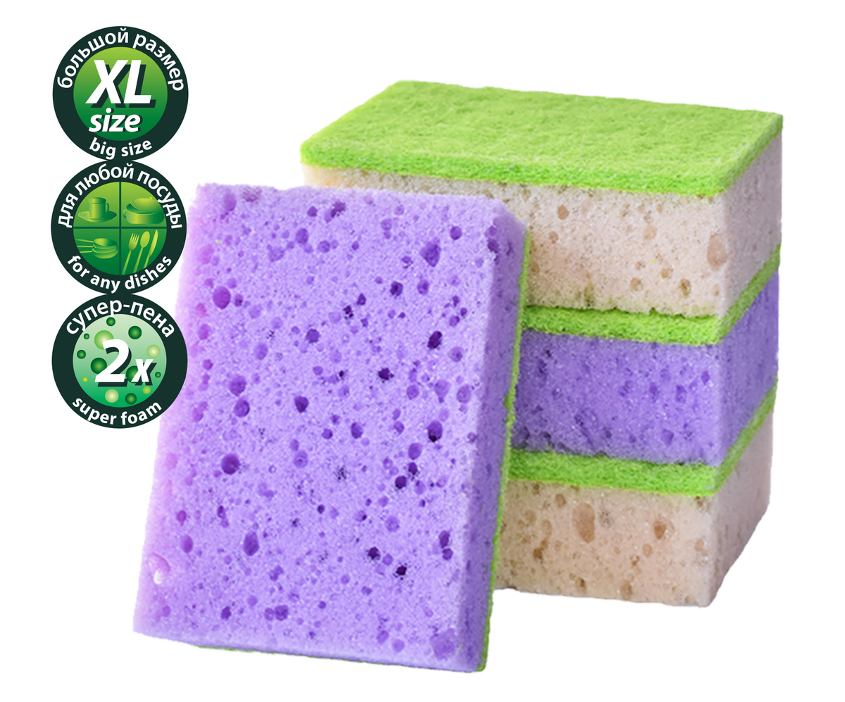 • Благодаря своей структуре губки эффективно удаляют загрязнения и значительно экономят моющее средство