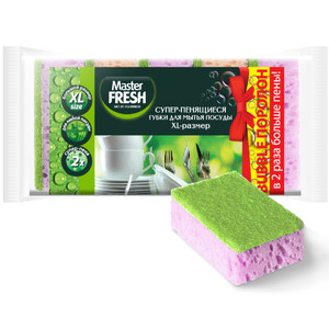 Губки для мытья посуды Master FRESH "XL bubble-поролон"имеют большой размер, а макропористая структура поролона способствует обильному пенообразованию (в два раза больше активной пены).