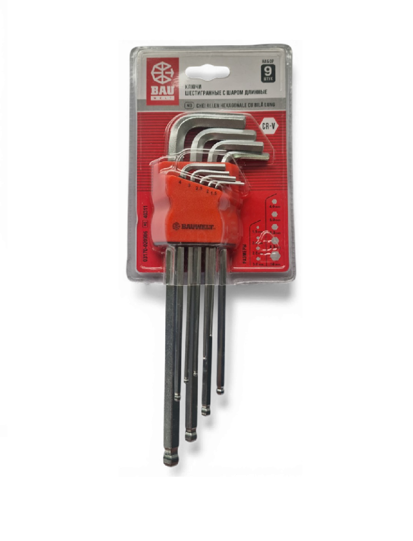 Ключи шестигранные шаровидные 1,5-10мм CrV длинные 9шт Bauwelt 03170-020906
