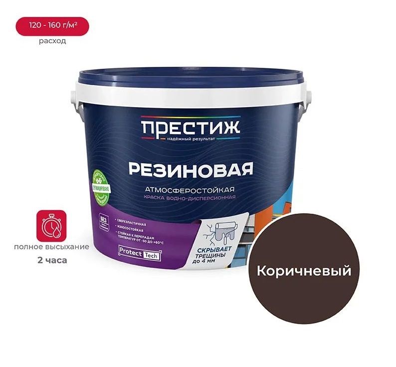 Краска РЕЗИНОВАЯ КОРИЧНЕВАЯ 1кг водно-дисперсионная ПРЕСТИЖ