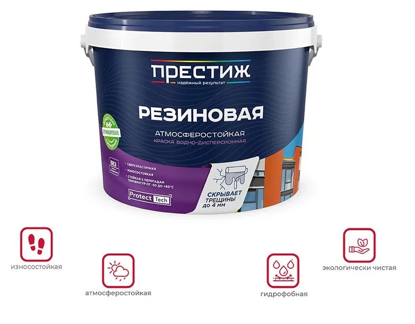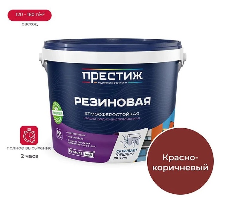 Краска РЕЗИНОВАЯ КРАСНО-КОРИЧНЕВАЯ 1кг водно-дисперсионная ПРЕСТИЖ