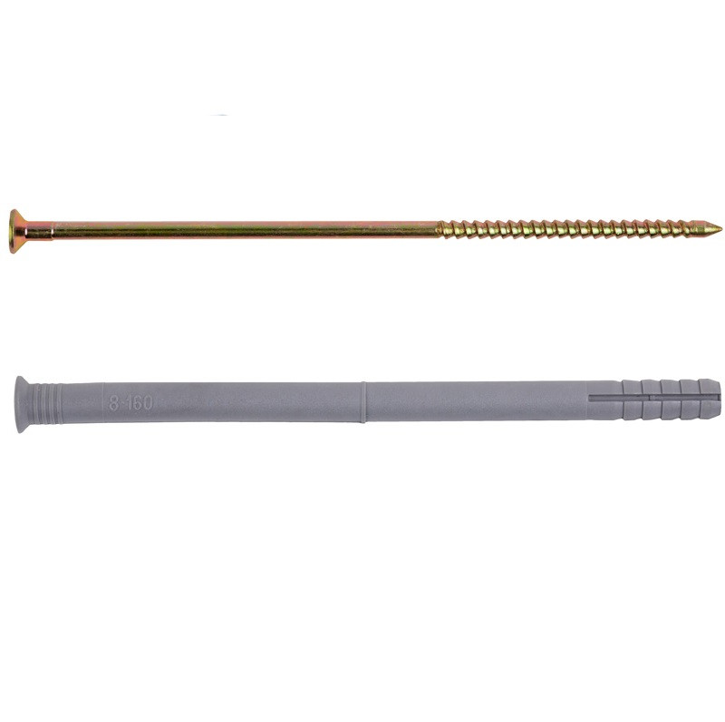 - Размеры: Диаметр дюбеля — 8 мм, общая длина — 160 мм.