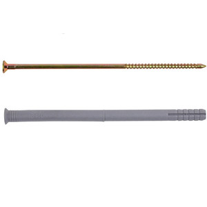 - Конструкция: Состоит из распорного полипропиленового дюбеля и стального оцинкованного гвоздя-шурупа.