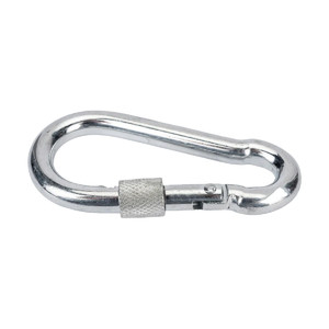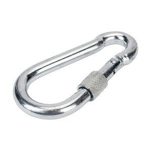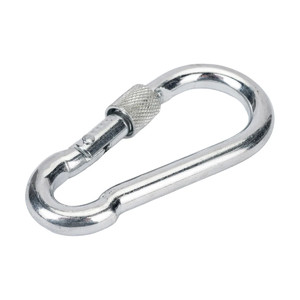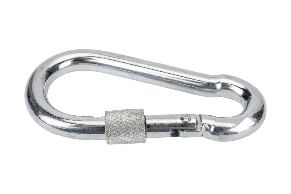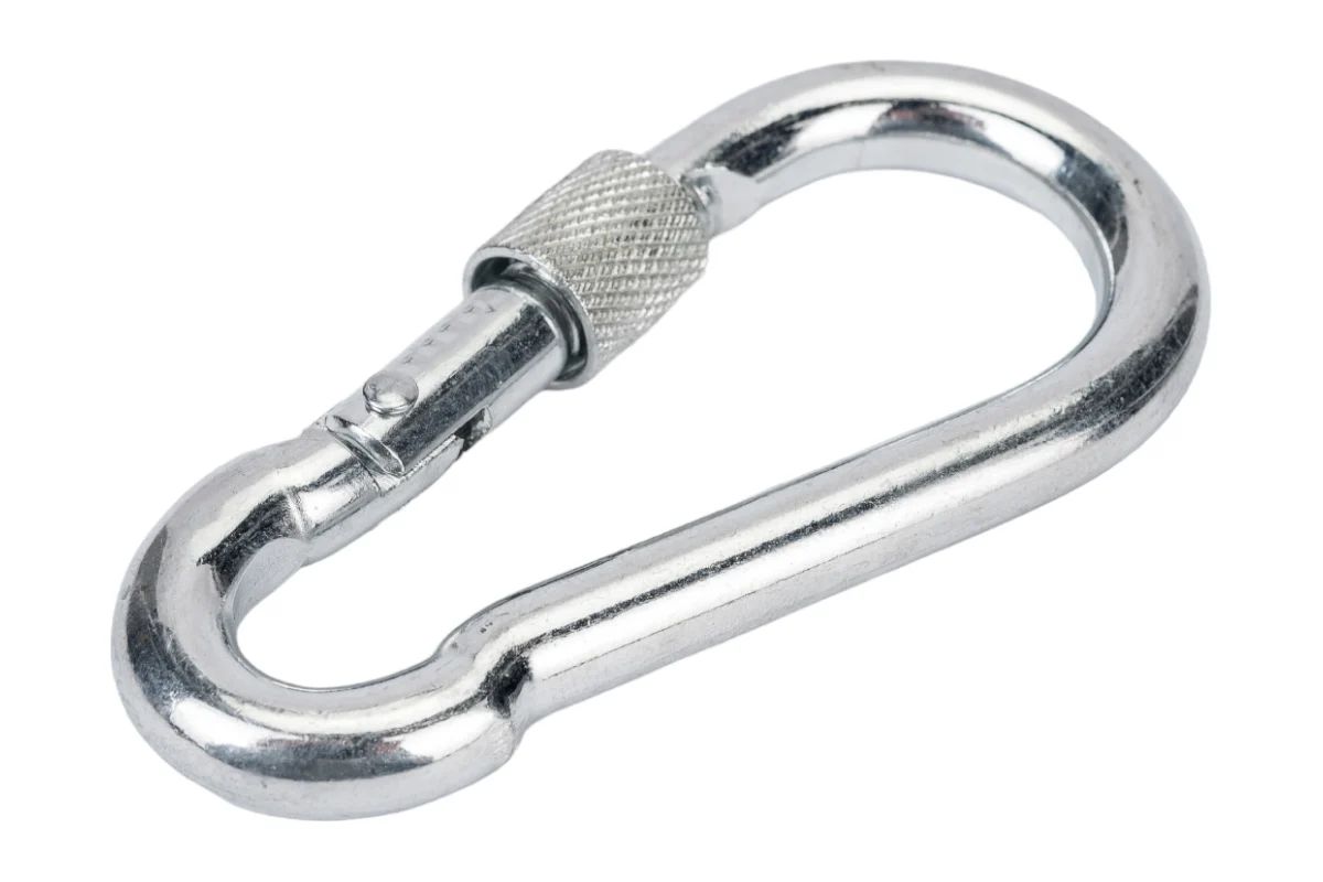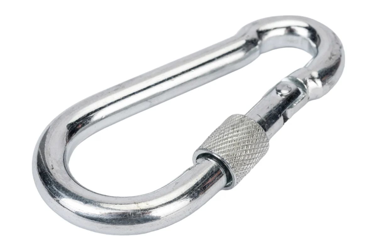 Карабин "пожарный" с фиксатором (муфтой) DIN 5299D размером 8x80 мм — это такелажный элемент, предназначенный для быстрого и надежного соединения цепей, тросов и канатов. Главная особенность модели «D» — наличие винтовой муфты, которая накручивается на защелку и предотвращает случайное раскрытие карабина