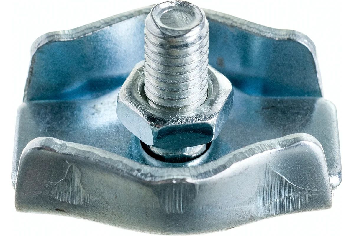Зажим Simplex (одинарный) диаметром 5 мм — это стальной зажим-соединитель флажкового типа, предназначенный для создания петель на концах стальных тросов и канатов, Не менее двух зажимов на соединение.