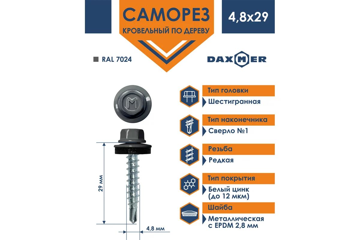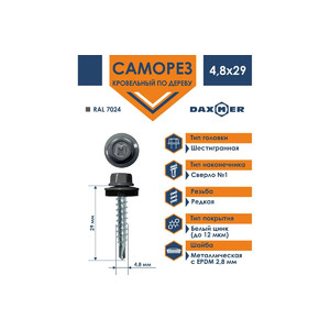 - Материал кровельного самореза Daxmer 4,8х29 RAL 7024- сталь С1022