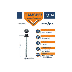 - Материал кровельного самореза Daxmer 4,8х70 RAL 7024- сталь С1022