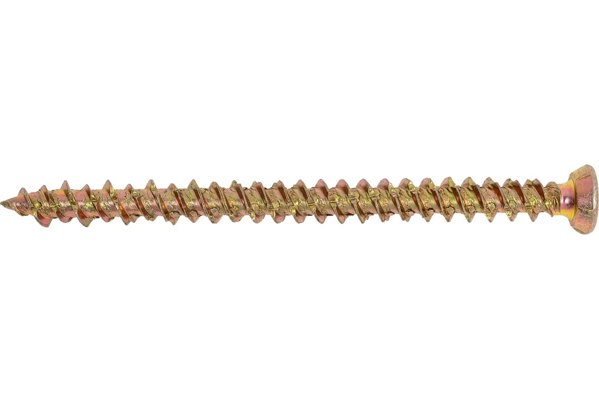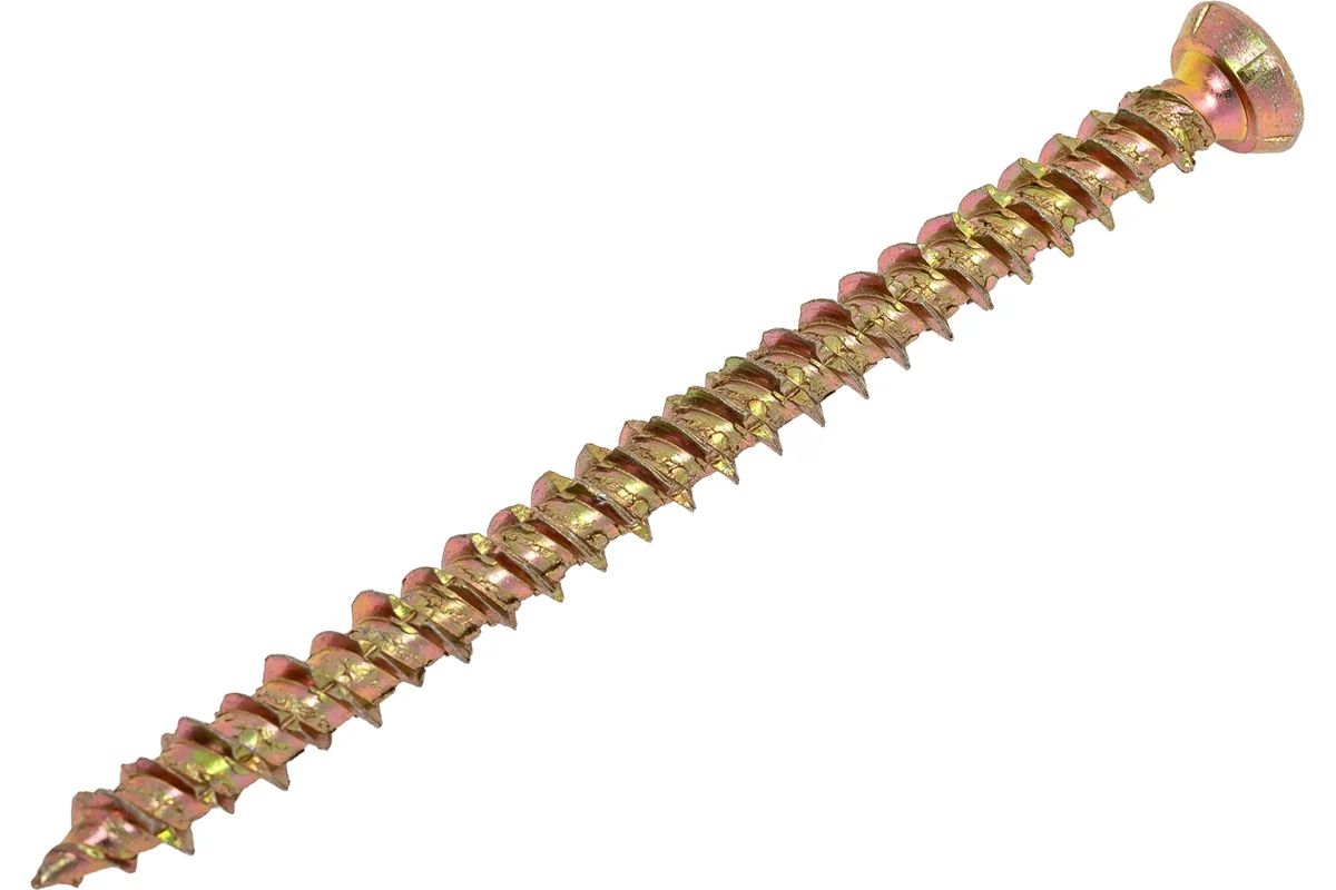 - Конструкция: Потайная головка с насечками для раззенковки и двухзаходная резьба переменной высоты для надежной фиксации в бетоне