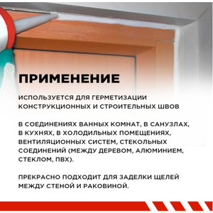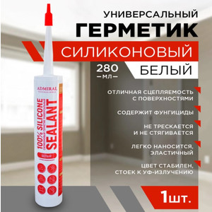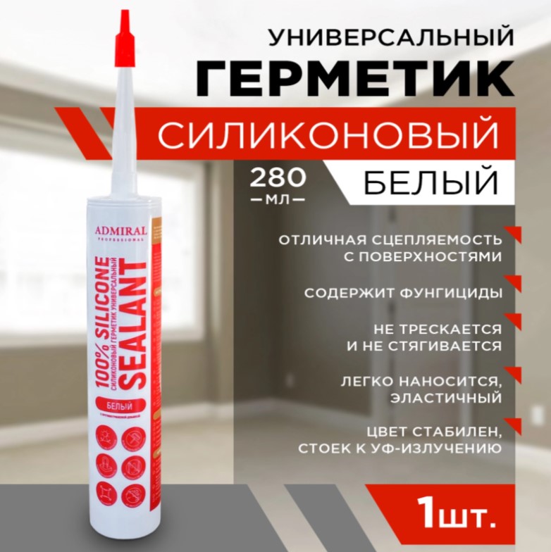 Высококачественный универсальный силиконовый герметик Admiral Professional с противогрибковой добавкой представляет собой однокомпонентный уксусно-силиконовый герметик, отверждаемый при комнатной температуре. Предназначен для уплотнения, соединения и защиты непористых поверхностей от проникновения воздуха и влаги; для герметизации оконных рам, дверных коробок, кабельных каналов; герметизации стыков при монтаже сантехнического оборудования, систем кондиционирования воздуха; защиты полиуретановой монтажной пены от УФ-лучей.