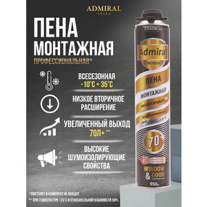 - Выход пены — до 70 литров* (длина заполнения стандартного (3*3 см) монтажного шва до 55 метров погонных. * При температуре +23°С и относительной влажности 50%.