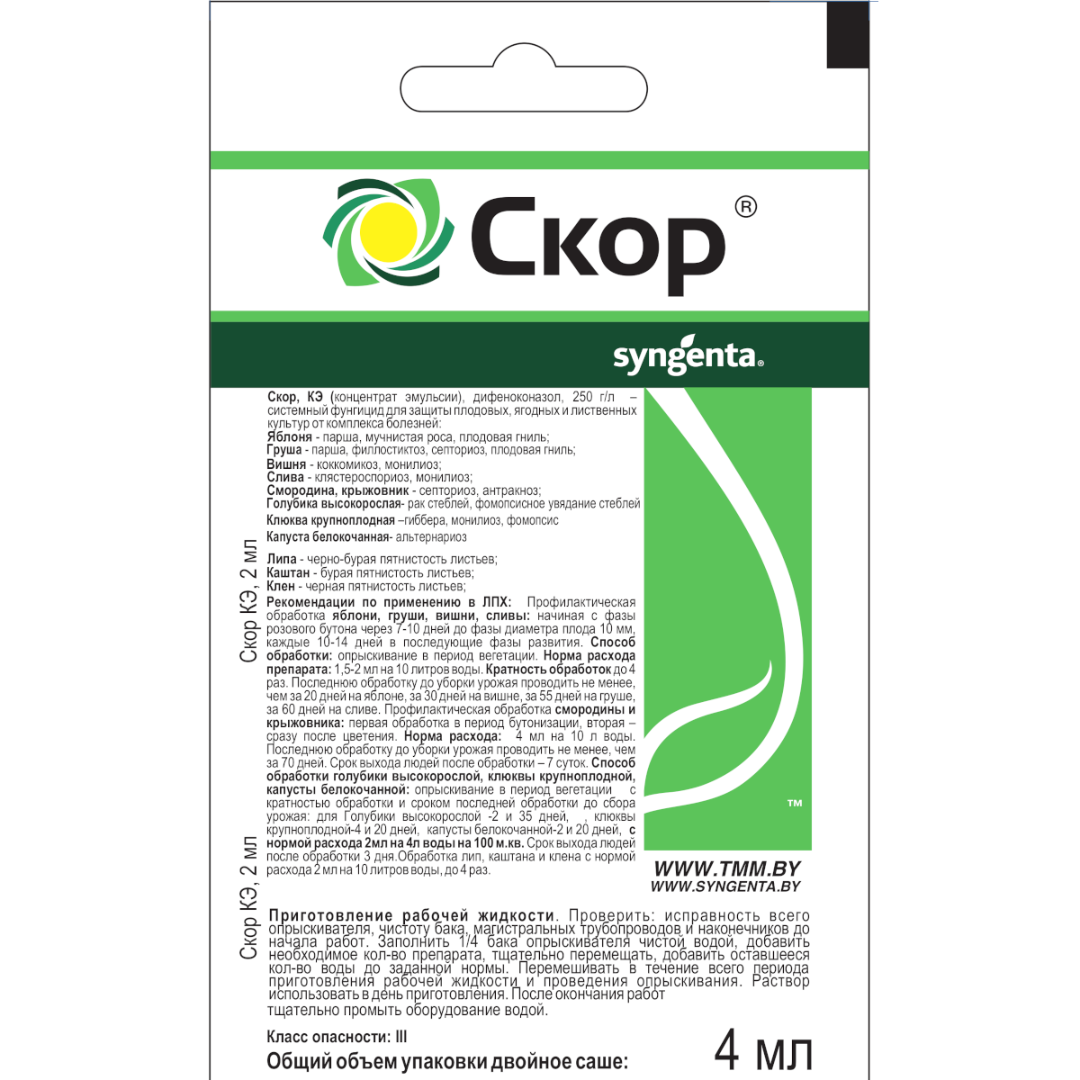 - Действующее вещество: дифеноконазол (250 г/л).