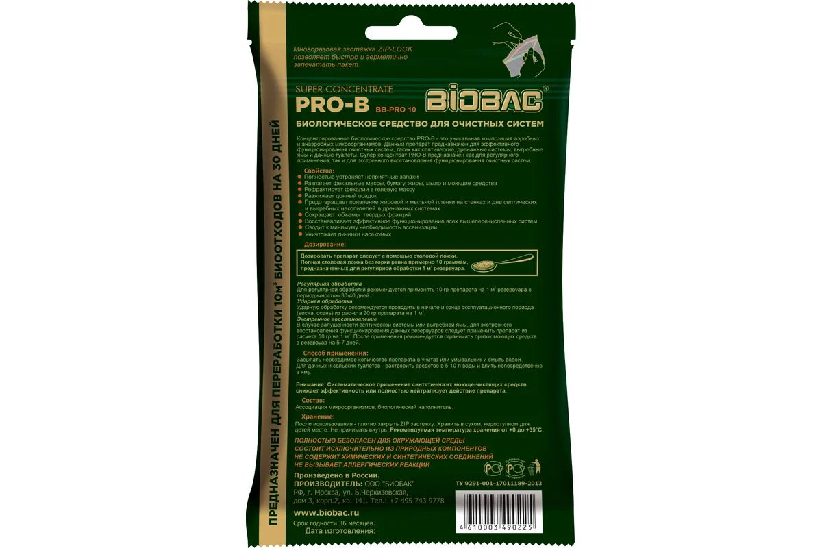 - Производитель ООО "Биобак", г. Москва,ул. Б. Черкизовская, д.3,к.2