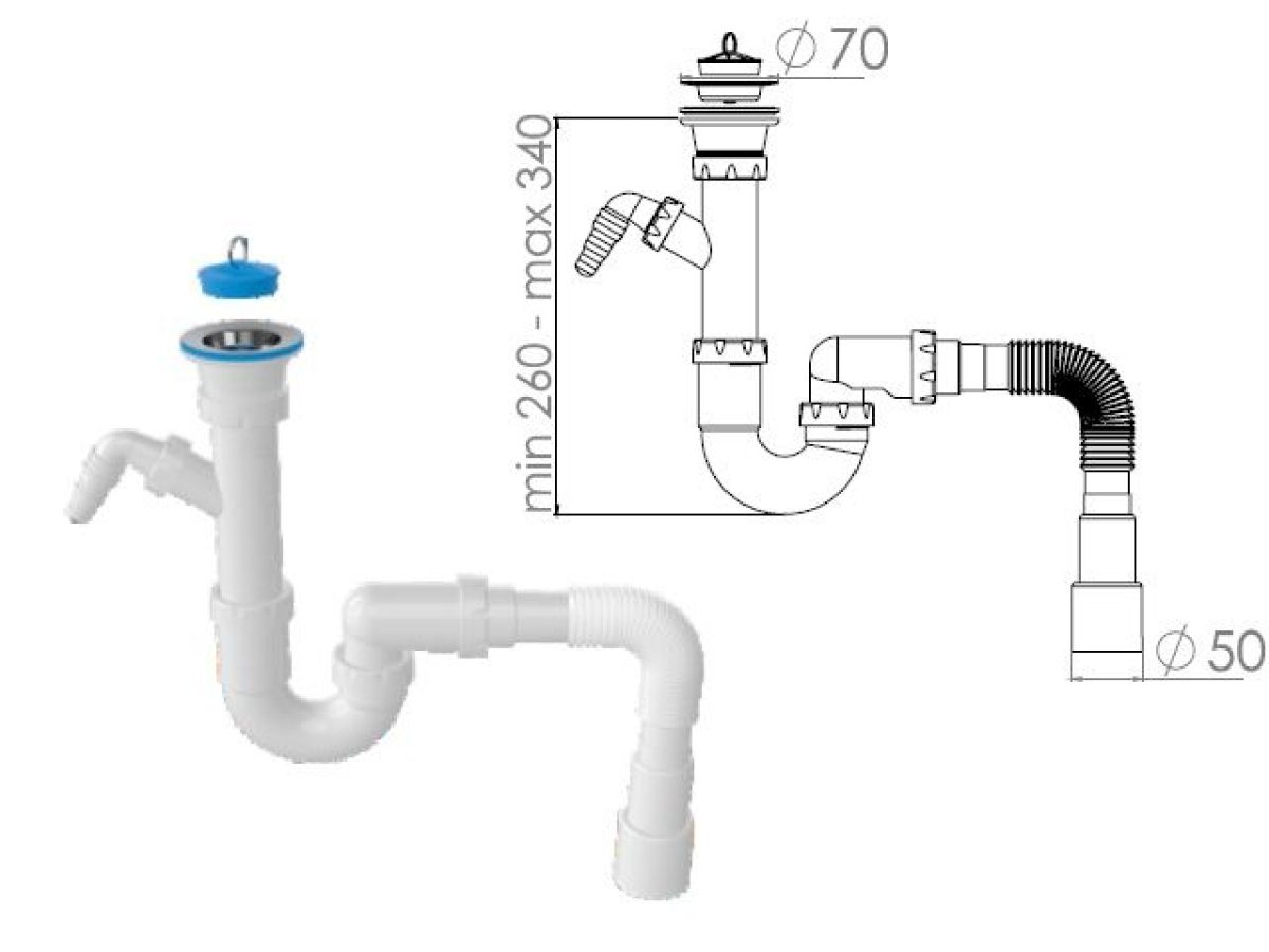 - Диаметр выпуска (отверстия для слива): 1 1/2 дюйма