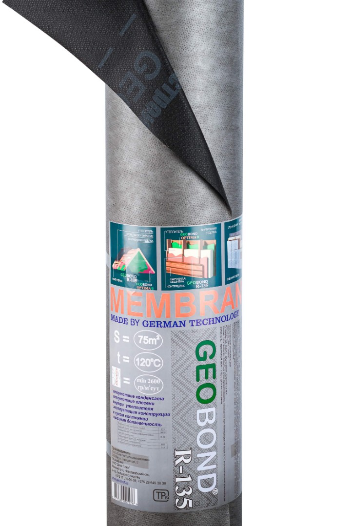 Мембрана крепится над утеплителем поверх стропил под обрешеткой. Служит как дополнительная защита от ветра и для защиты утеплителя и несущих элементов конструкций от подкровельного конденсата. Гидро-ветрозащитная паропроницаемая мембрана GEOBOND R - 135 не может применяться в качестве основной кровли! Использование GEOBOND R - 135 в качестве временной кровли допускается на срок до 4-х месяцев. Рекомендуется использовать при максимальной площади одного ската не более 100м2. Оптимальна для двухскатной кровли с малым углом наклона.